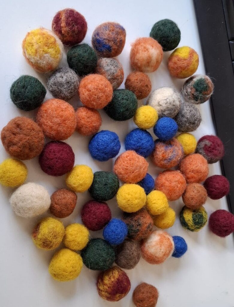 Huovutetut pallot ovat ekologisia ja kissoille mieluisia, sillä ne on huovutettu 100% villasta. Palloja löytyy eri kokoja ja värejä.