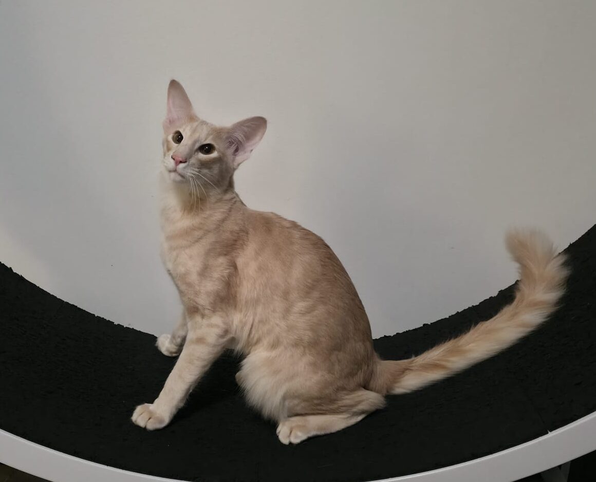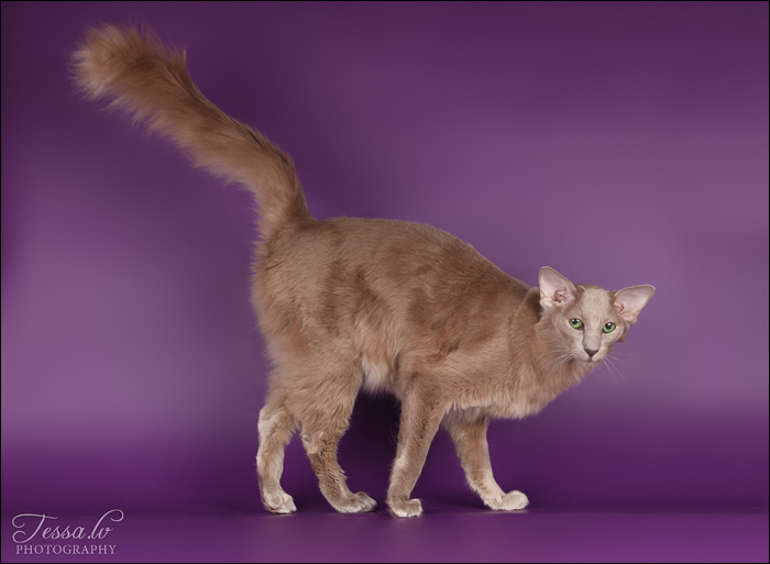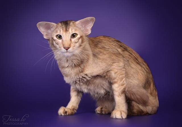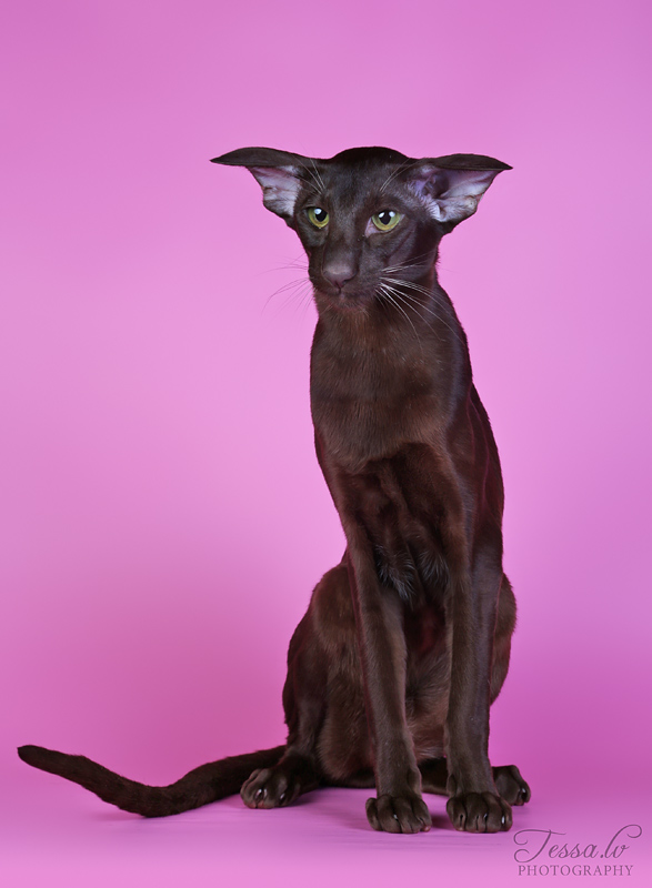 OLH bs 24 – itämainen pitkäkarva, joka on väriltään suklaasavu ja kuvioltaan täplikäs.